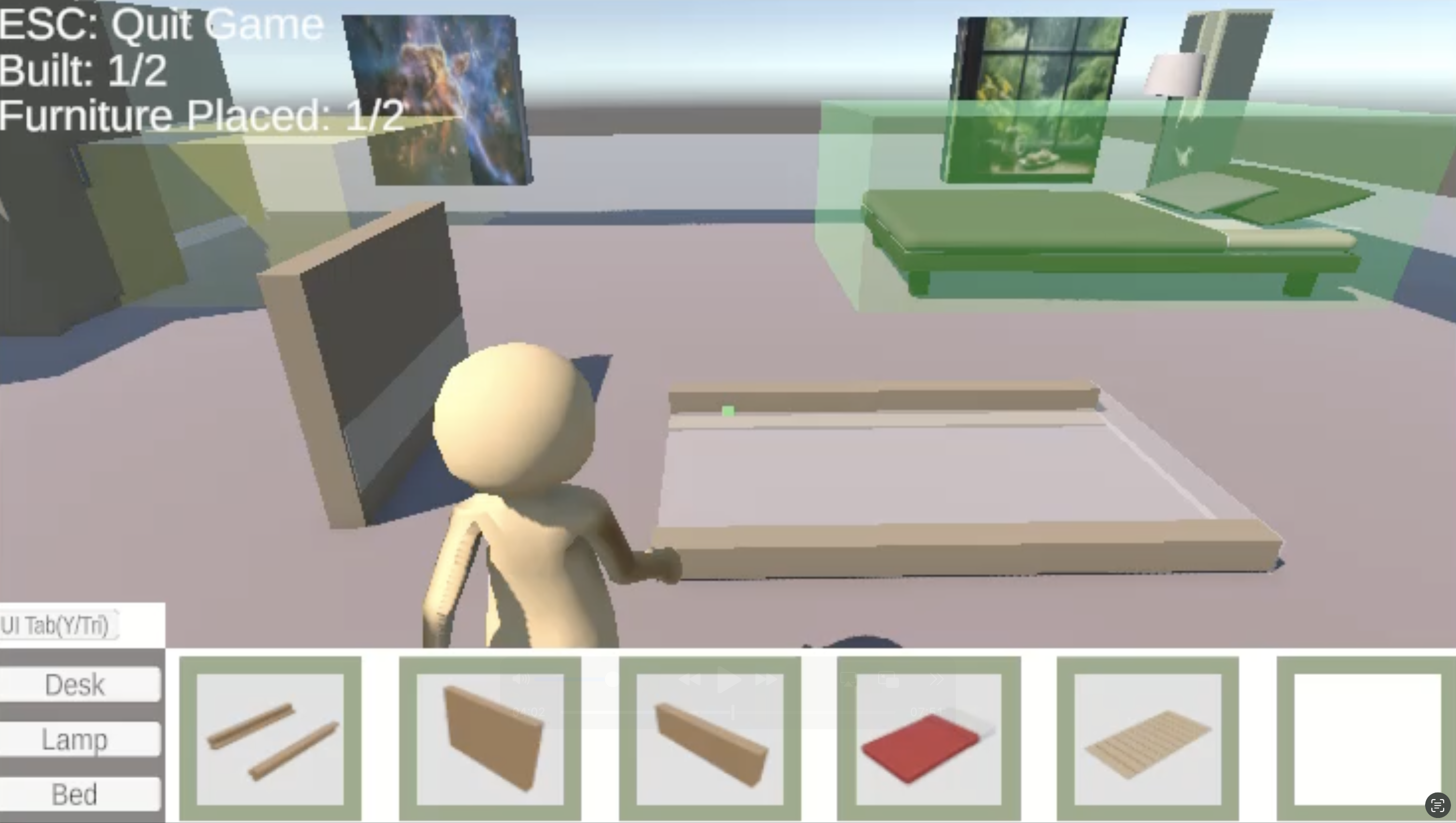 - Win/Lose Condition – There’s now a proper end state to the level so players can actually win by building and placing required furnitures.